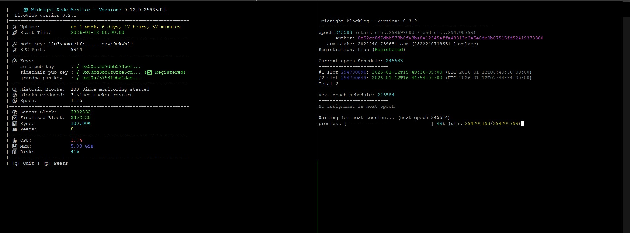 - cd $HOME/midnight; ./LiveView.sh